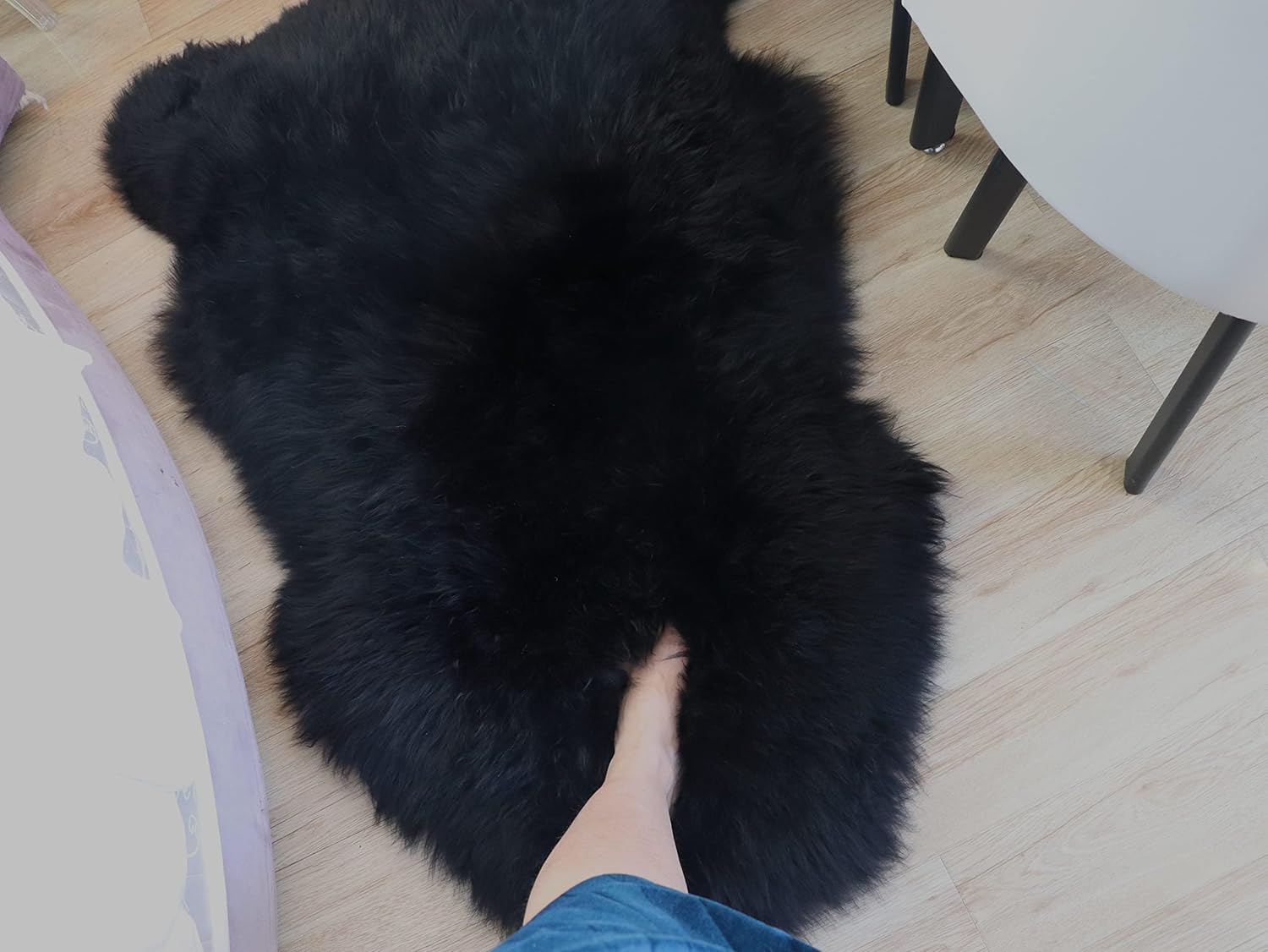 This Genuine sheepskin rug is more than just a floor covering. Use it as a plush throw over your bed or sofa, a statement accent on furniture, or a cozy touch to your favorite reading nook. The rich black hue adds depth and sophistication to any setting.